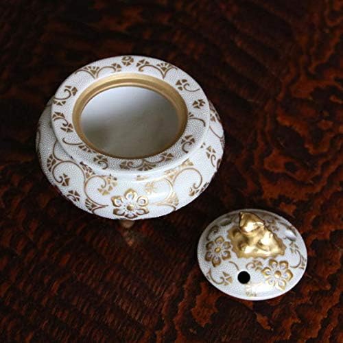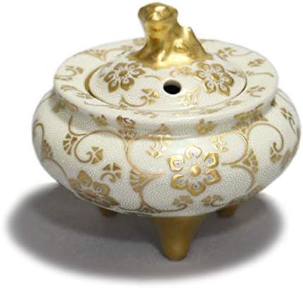 仲田錦玉 九谷焼 獅子ツマミ香炉 渦打白粒盛金宝相華唐草