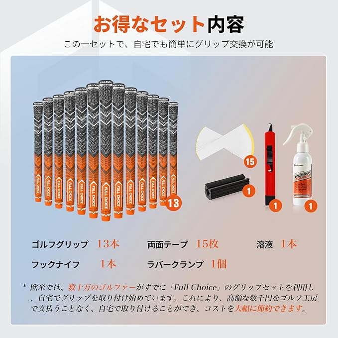 ゴルフゴムグリップ(13本)セット、交換用パーツセット付属、コットンコード入り、滑りにくく快適な握り心地