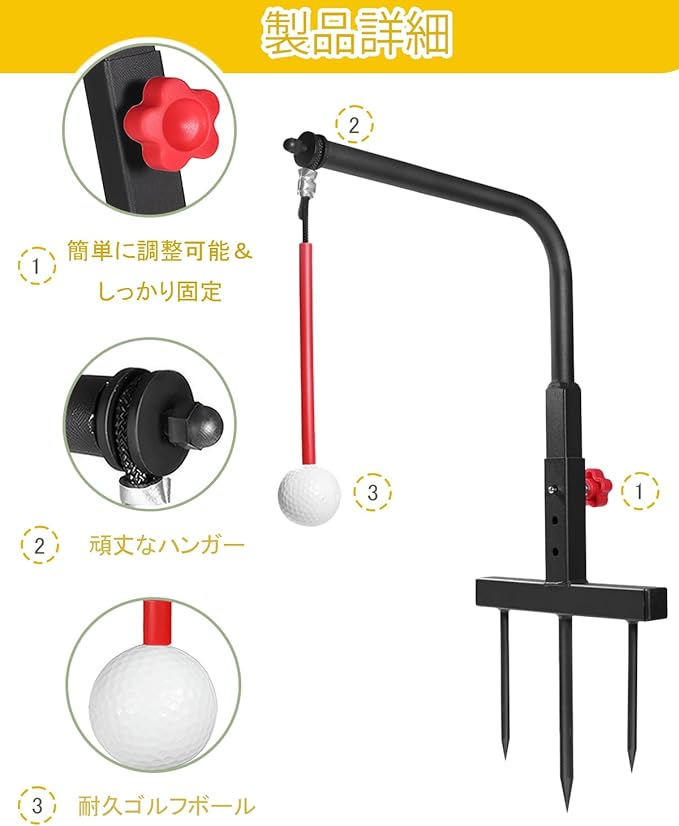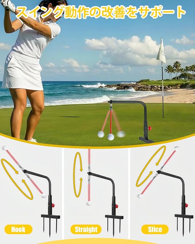 ⭐ 多機能ゴルフスイングトレーナー 実際の打撃感を再現できるスイング練習器具。高さは3段階で調整可能、身長やレベルを問わず理想的なスイング練習が行えます。右利き・左利き両方に対応し、打撃後にボールが360 回転するため、自分のフォームを視覚的に確認しながら効率よく上達できます。