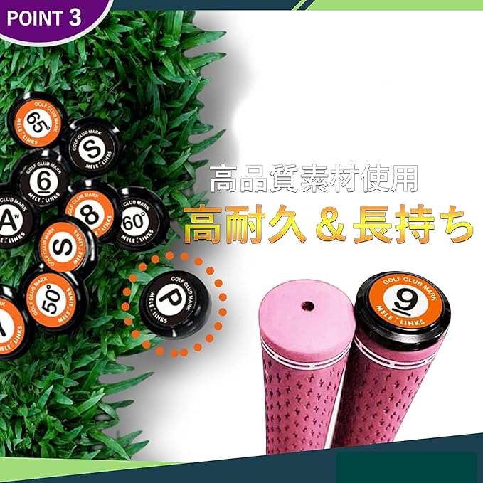 アイアン探しで困ったことはありませんか?そういう時にとても役立つアイアン番手マーカーです♪ フェアウェイやユーティリティにももちろんお使いいただけます! 取付簡単で取り外しも簡単に出来て使いまわしが出来る便利アイテム♪ グリップ穴に取り付ければ、防水・腐食防止にもなるグッドアイテムです♪