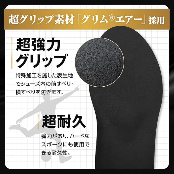 スポーツ 滑らない 超強力グリップ 前滑り 横滑り防止 高耐久性 高吸湿性 抗菌防臭性 パフォーマンスサポート 究極インソール