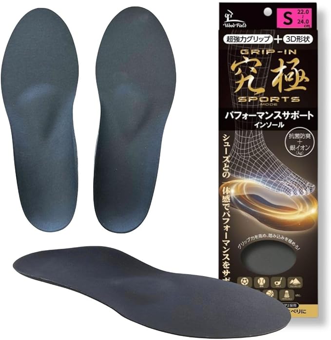 「グリップイン インソール 究極」は様々なスポーツシーンでのパフォーマンスをサポートするために作られたスポーツ用インソールです。グリップ力に優れた特殊生地「グリム エア」を表生地に採用し、形状を足裏にフィットする立体構造にすることでシューズとの一体感を感じられ、前すべり、横すべり対策に優れた商品です。高耐久性・高吸湿性・抗菌防臭性能も兼ね揃えており、日常のウォーキングからハードなスポーツまでご使用いただけます。