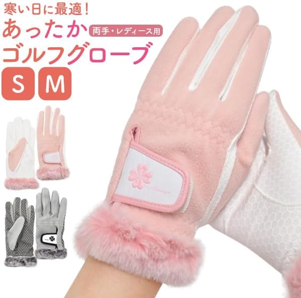 [PLATA] ゴルフグローブ レディース 両手用 あったかゴルフグローブ 保温 フリース素材 滑り止め グリップ サイズ調整可能