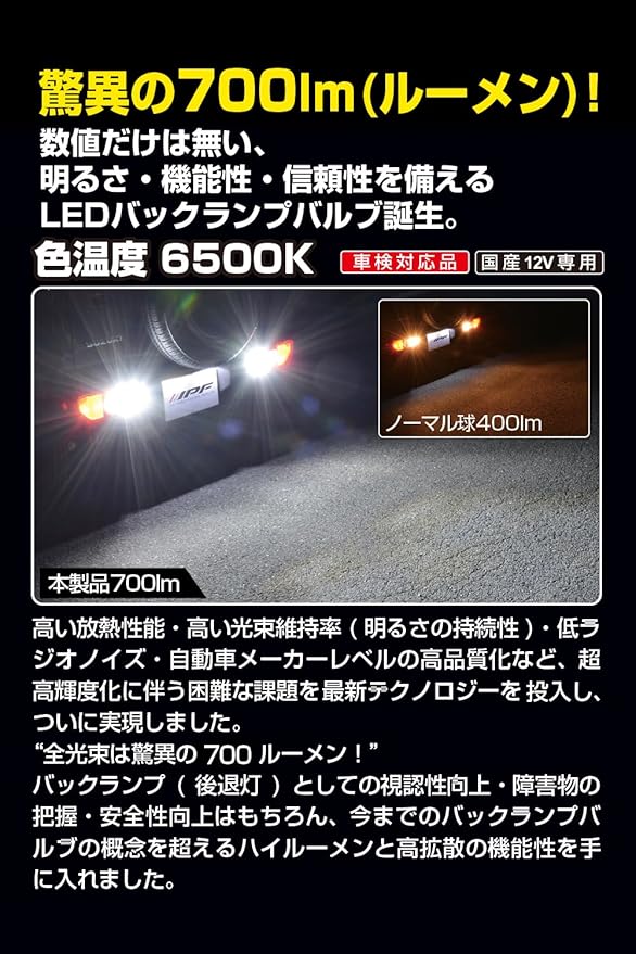 M's Basic by IPF バックランプ LED 車用 T20 700lm 6500K ホワイト 12V用 1本入 車検対応 ノイズ対策済 ハイスペックモデル ハーフミラートップレンズ ステルス性向上 AMZ-BL501