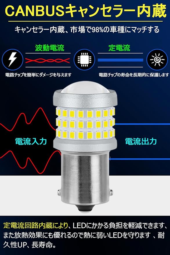 定電流回路 安定性抜群:この t20 led ダブル はインテリジェント定電流回路を搭載。車両電圧変化にも影響されずに安定した点灯を持続します。これによりLEDにかかる負荷をおさえ、より長寿命を実現しております。