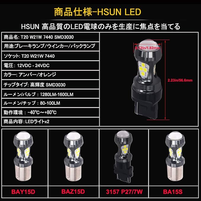HSUN T20 W21/5W LED ダブル 爆光 ホワイト 7443 バルブ 12V-24V ストップ テールランプ ブレーキランプ ポジション バックライト CANBUSキャンセラー抵抗内蔵 車検対応、入数:2個