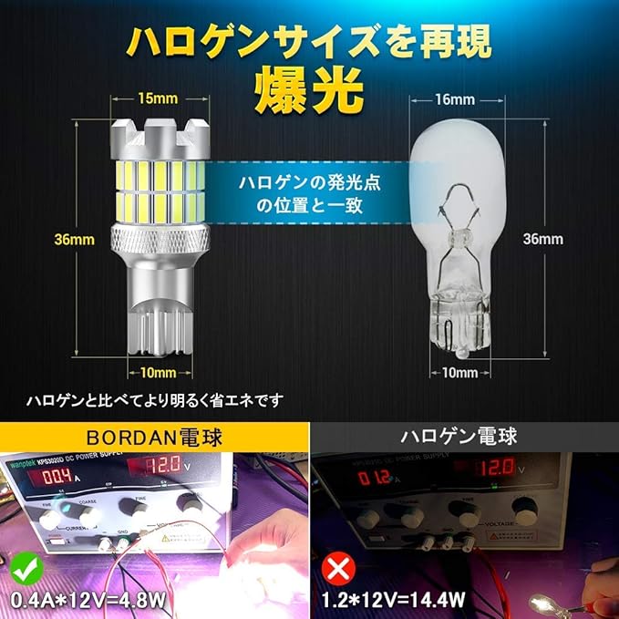 【無極性&1:1サイズ】ハロゲンサイズ、極性フリーで、取付は簡単!原箇所のまま差し込むだけで取付ます。加工必要がないです。