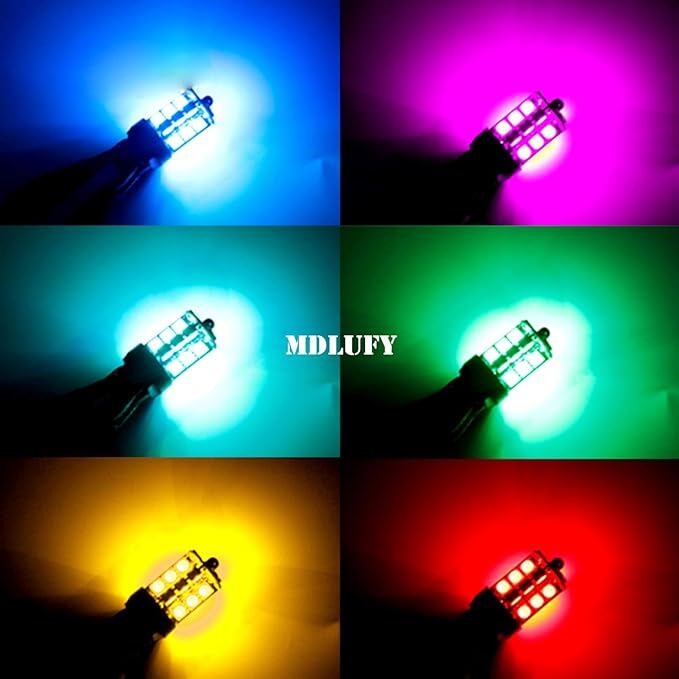 T20 車 シングル ノーマル球 クリアランス ランプ ポジション 内蔵 カラフル バルブ 7440 W21W 5050 27連 リモコン付き カラフル RGB 多色切替 ストロボ モード バルブ DC12V 車用 t20 ソケット付き リバースライト/テール ライト/フォグ ライト汎用 取付簡単 2個セット