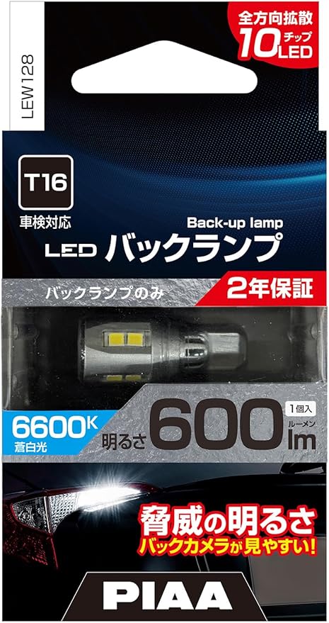 PIAA(ピア) 車用 バルブ バックランプ用 LED 6600K ★定電流&インタラクティブ制御回路内蔵/全方向拡散10チップ 12V用 6W T16 600lm 車検対応 1個入 LEW128