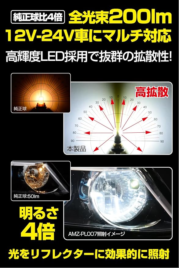 ※一部車両では球切れ警告灯の点灯やコンピューターに支障をきたす場合があります。その場合は、元の純正バルブに交換して下さい。