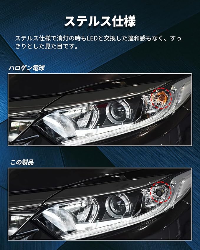 【ハイフラ防止機能内蔵】通常LEDは純正球よりも消費電力が低いため、玉切れを起こしたと認識し誤作動を起こしてしまいハイフラ状態になり、別途ハイフラ対策をする必要がありますが、本製品は、業界初に冷却ファン付きますので、消費電力が高いになる可能です。さらに小型のハイフラ抵抗をバルブ内に内蔵していますので、ハイブリッド車特有の点灯時の瞬間的な高電圧にも対応でき、99%の国産車が完璧にデコードできます。(万一ハイフラ状態になる場合、ご連絡いただけると早速対応できます。)