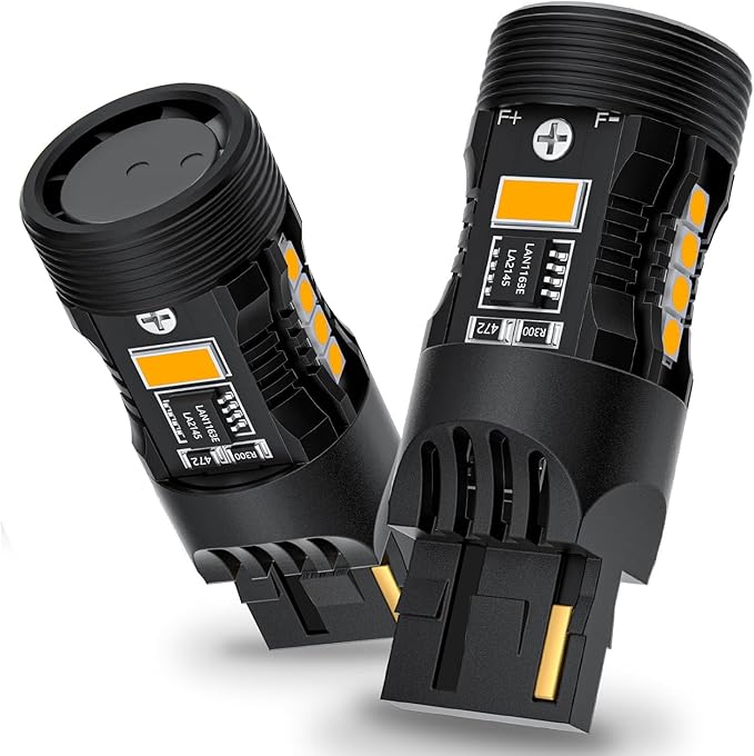 T20 シングル LED ウインカー アンバー /7440 W21W WY21W ピンチ部違い兼用 バルブ スーパーキャンセラー技術 最新型 冷却ファン搭載 12V ハイフラ 防止抵抗内蔵 高輝度な3570LEDチップ ステルス仕様 無極性 車検対応 2個セット