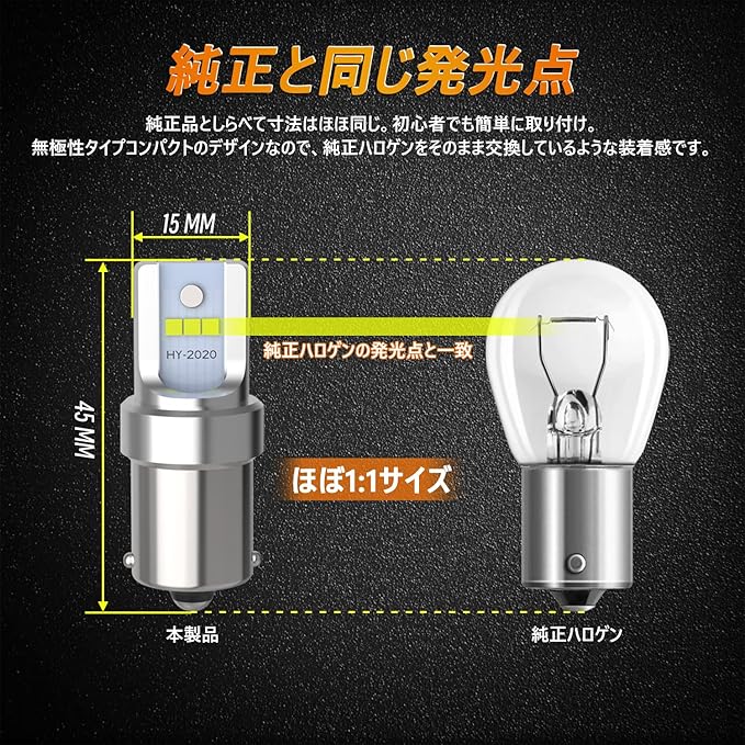 【最新型のデザイン】ヘッドライトの両面発光と一体化したデザインを採用しており、複雑なワイヤーの存在を減らし、不適切な取り付けワイヤーの追加コストも削減します。ソケットとの適合性は向上し、接触不良や緩みもなして幅広い車両に対応できます。適用ソケット:S25、1156、BA15S、P21W、G18