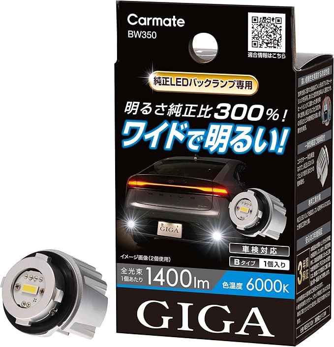 カーメイト(CARMATE) GIGA LED バックランプ 60 プリウス ヤリスクロス レヴォーグ レイバック 6000K 1400lm 明るさ純正比300%!車検対応 3年保証 BW350