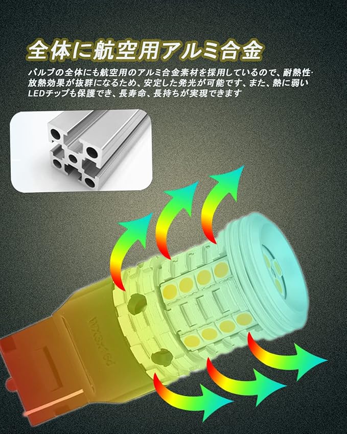 【放熱効果&耐久性抜群】航空用アルミ素材放熱効果が抜群、LEDの性能を確保でき、安定した発光が可能です。 バルブLEDチップと抵抗から発生する熱を効率良く逃し、寿命を伸ばします、30000時間以上使えます。