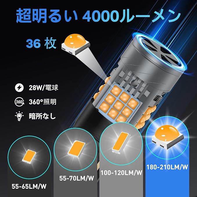 【放熱効果&耐久性抜群】ウインカーは高速静音の冷却ファンが搭載されていて、バルブの全体にも航空用の6063アルミ合金素材を採用しているので、耐熱性放熱効果が抜群になるため、安定した発光が可能です、また、瞬間の熱伝導と短時間の排熱ができて、効率の高い放熱も可能になります。バルブの性能を確保でき、寿命が長くなります。