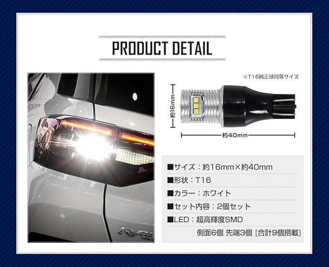 CORSA ライズ/ロッキー 適合 LED バックランプ T16 45W 2個1セット バックライト ホワイト 無極性 6500K 560lm カスタム パーツ アクセサリー ドレスアップ RAIZE ROCKY [2] M
