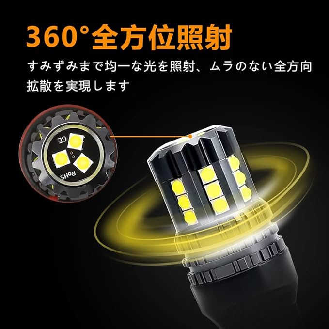 【コスパ抜群】T20 シングル球 LED バックランプ、高輝度4000LMの明るさ、純白の光ではなく、光は均一で、透亮で、鮮明で、より快適に見えます。、全方位LEDの設計、死角がなく、光の照射効率を最大限に発揮します。当店の車ライトはオリジナルの車ライトより3倍以上明るいです。電気消費量は元のランプの7分の1しかないです。