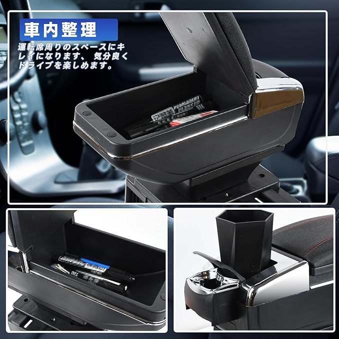 アームレスト コンソールボックス 車 多機能 小物入れ 汎用 可動式 車用収納ボックス 内装 車肘置き肘掛け ドリンクホルダー収納トレイ