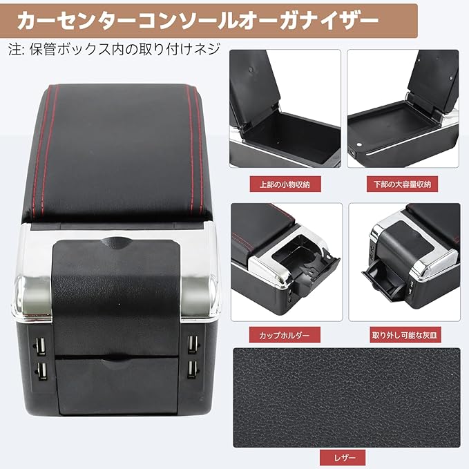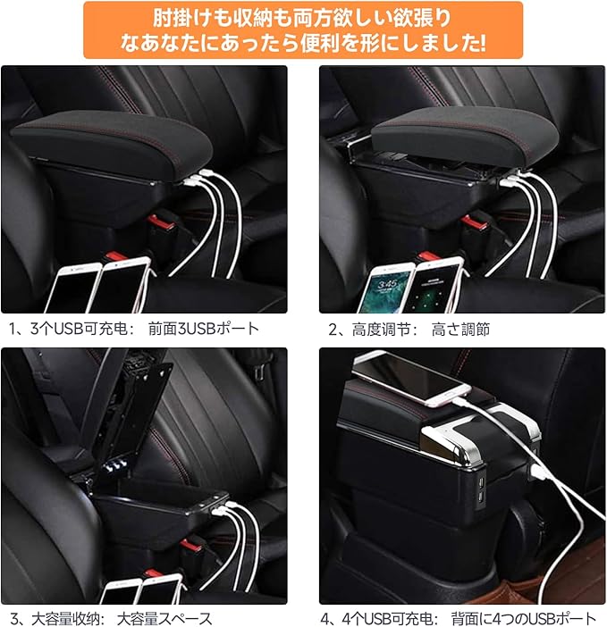 アームレスト コンソールボックス 車用収納ボックス 汎用 車肘置き 肘掛け 多機能 汎用 USBポート付き 内装 長時間 運転 アームレスト