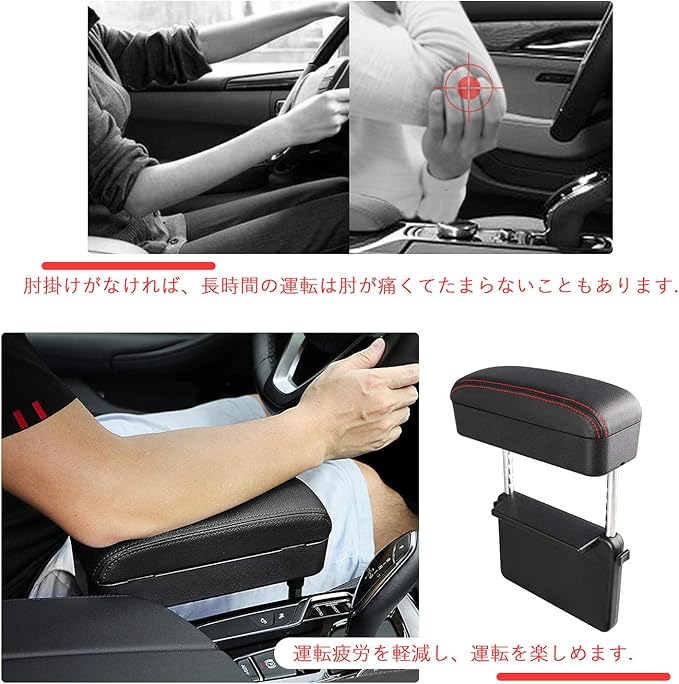疲労軽減:肘を置きやすい高さにより楽な姿勢で運転の疲れを軽減、より快適なドライブ体験をサポート致します。 高さ調節ボタンがあるため、運転しない時には、高度を調整して、アームレストに肘を掛けて、疲労を軽減できます。