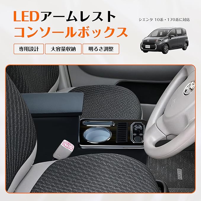 コンソールボックス シエンタ 10系/170系 アームレスト 車 収納 車載コインストレージ 小銭整理 RGB 7色変換 コンソールボックス USB Type-C/Type-A ポート付 大容量 アクセサリー SIENTA 前後期 H27.7~現行