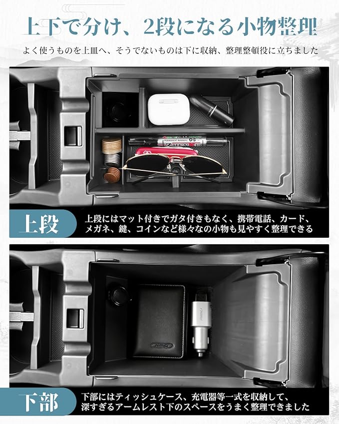 【滑り止め付き】滑り止め加工済みラバーマット、防塵、防キズ、小物が動いた際のカタカタ異音を減少します。ノーマルの無駄な広い空間をトレーを使う事によって機能性と収納性が飛躍的に上がりへの転換しましょう!!