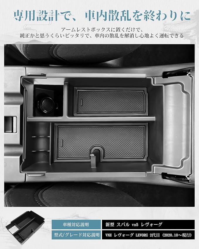 ruiya 新型 レヴォーグ VN5 VNH 専用 コンソールトレイ コンソールボックス コンソール トレイ センターコンソール アクセサリー 小物入れ ABS素材 充電USB機能 ガタガタ音なし レヴォーグ vn5 アクセサリー vnh レヴォーグ 内装パーツ カスタムパーツ