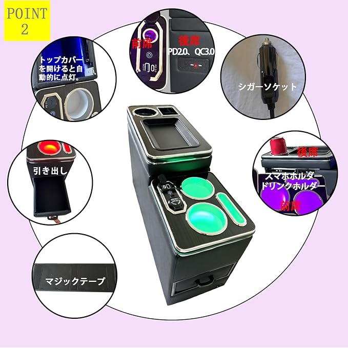コンソールボックス トヨタ ヴォクシー適用 80系 70系 60系 NOAH適用 VOXY適用アームレストコンソール ノア エスティマ適用 エスクァイア適用 ガソリン車 呼吸ランプ 七色変換 USBポート 収納便利 汎用