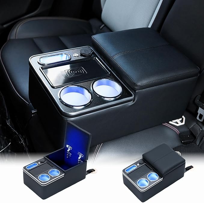 【2026年新登場】 Maydolly リアコンソールボックス リアシート収納ボックス 車内収納ボックス 専用設計 多機能 USB/ワイヤレス充電 カップホルダー2個 スマホホルダー LED照明 車内整理 車載グッズ ミ二バン 5人乗りセダン用