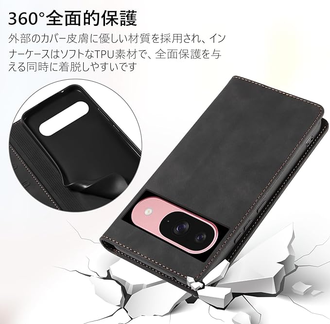 【衝撃吸収・360 保護】外部のカバーはpixel 10よりも1mm以上広めに設計されており、落下時の衝撃を効果的に吸収してスマホへの直接的な外力を防ぐようになっています。pixel 10ケースインナーケースはソフトなTPU素材で、二重の保護として機能します。また、マグネットフラップを採用、pixel 9手帳型 ケースに搭載されているマグネット式のフリップにより、カバーをしっかり固定することができます。