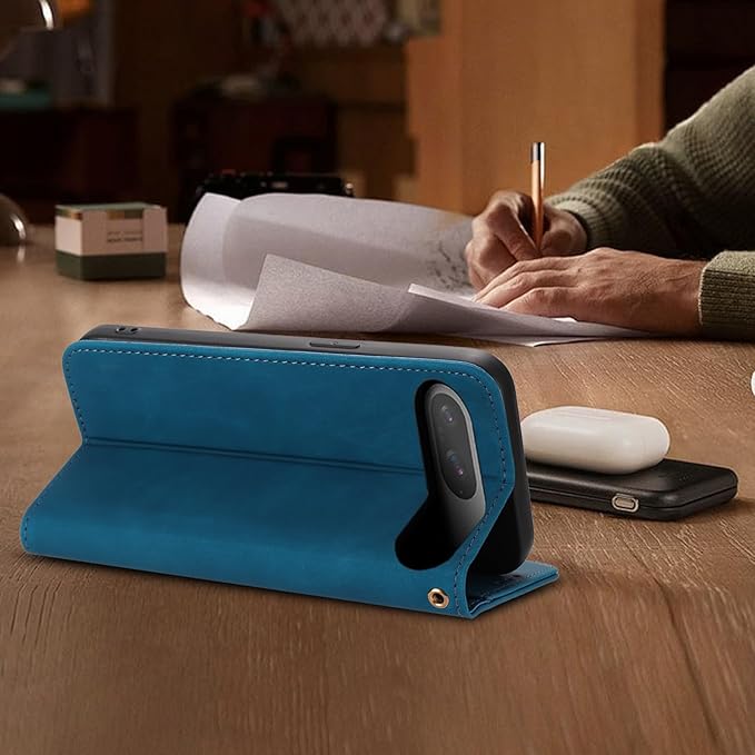 兼用 Google Pixel 10 / 10 Pro用の ケース手帳型カバー 同色ストラップ付き 肌触り良いレザー スマホケース マグネット内蔵 全面保護 耐衝撃 耐摩擦 スタンド機能 カードケース 財布型 カード入れ ターコイズ