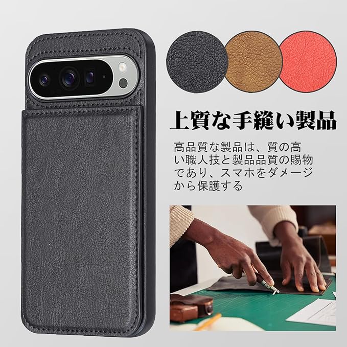 Cafma 対応GOOGLE PIXEL 10 PRO XL ケース 背面 カードケース pixel10 pro xl 携帯 カバー 薄い 手帳型 ケース グーグル ピクセル10pro xl 携帯 ケース 手帳型 耐衝撃 軽量 スタンド機能 背面 IC カード入れ 手帳型 財布型 カバー(ブラック)グーグル Pixel10 ProXL Black