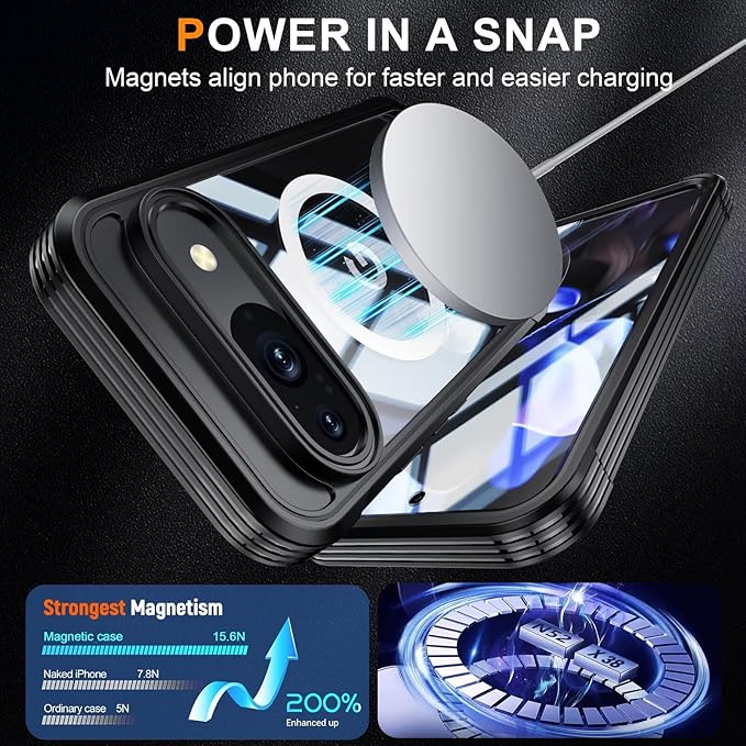 対応 Google Pixel 10/10Pro ケース MagSafe対応 全面カバー 両面ケース 液晶フィルム付き 360度全面保護 マグネット Qi充電 耐衝撃 アウトドア,ブラック