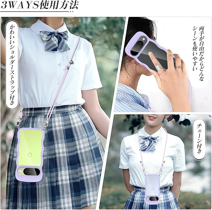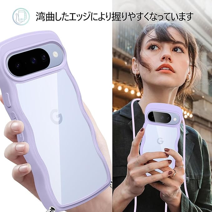 Google Pixel 10 / Pixel 10 Pro 用 ケース クリア ショルダー グーグル ピクセル 10/10Pro カバー 透明 かわいい 耐衝撃 スマホケース ストラップ付き 取り外し可能 長さ調整可能 首かけ 肩掛け 薄型 軽量 TPU ワイヤレス充電対応(パープル)