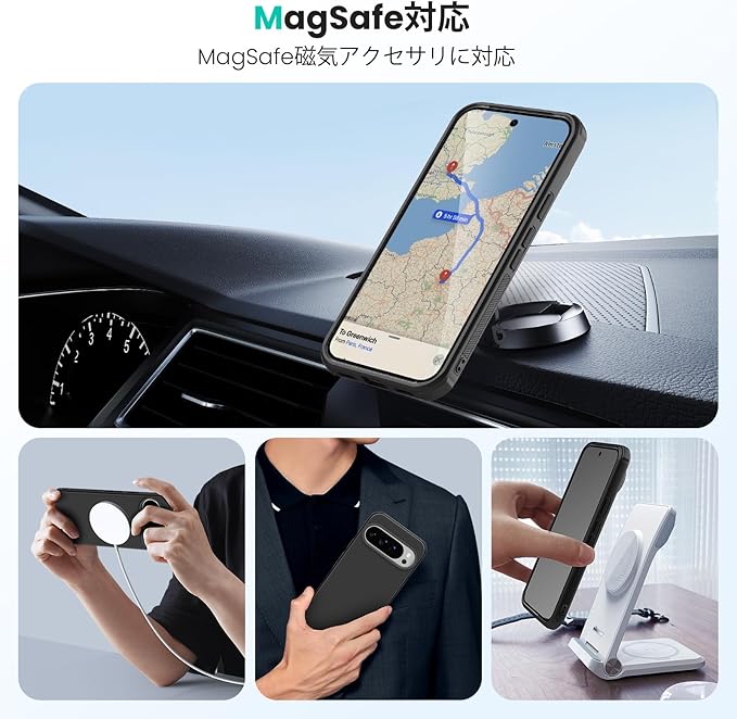 【Pixelsnap対応】Pixel 10/10 Pro専用に設計され、内蔵された高強度マグネットリングにより、Pixelsnap充電器・ウォレット・車載ホルダーなどのマグネットアクセサリーと強力かつ正確に吸着し、安定した接続と効率的なワイヤレス充電を実現します。