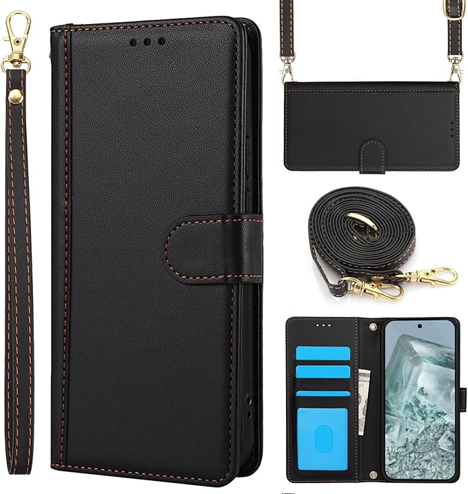 For Pixel10Proxl ケース 手帳型 ピクセル10プロXL ケース ショルダー カード収納 スマホケース 財布型 スタンド機能 カバー 肩掛け レザー ぐーくるぴくせる10pro XL 人気 女性 無地 シンプル 耐衝撃 全面保護 おしゃれ - ブラック