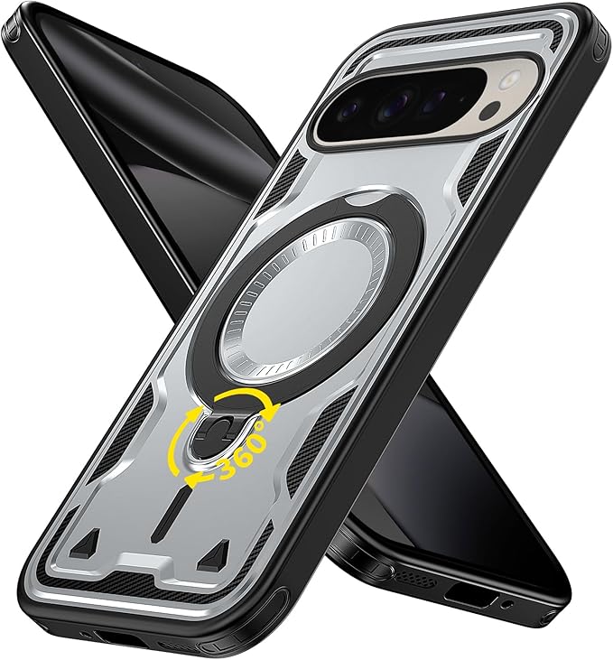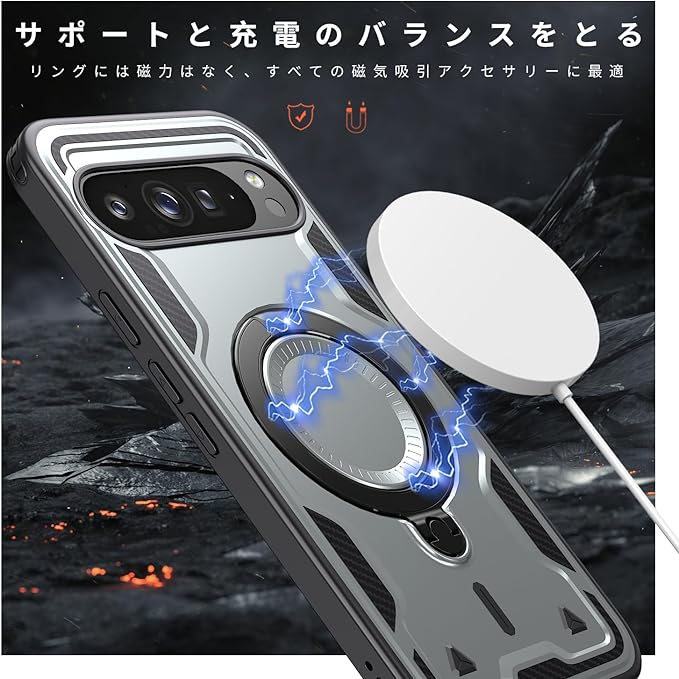 Google Pixel 10 Pro XL 用 ケース 耐衝撃 スタンド付き Magnetic対応 グーグルピクセル10Pro XL カバー リング TPU+PC ワイヤレス充電 米軍MIL規格取得 スタンド機能 (グレー)117-PX10PXL-07
