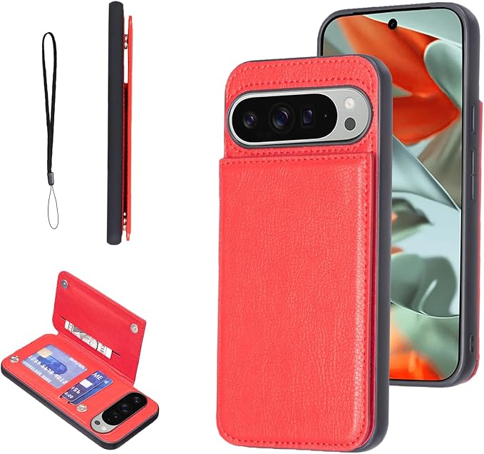 【OULO1】対応GOOGLE PIXEL 10 PRO XL ケース カード収納 手帳型 ケース ピクセル10pro xl レザー 携帯 ケース 手帳型 耐衝撃 軽量 スタンド機能 薄い 背面 IC カード入れ 手帳型 財布型 カバー(レッド)グーグル Pixel10ProXL Red