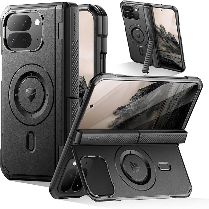 Dexnor Google Pixel 10 Pro Fold用ケース マグネット式 前面画面保護フィルム&ヒンジ保護付き フルボディラグド保護カバーバンパーケース(ブラック)