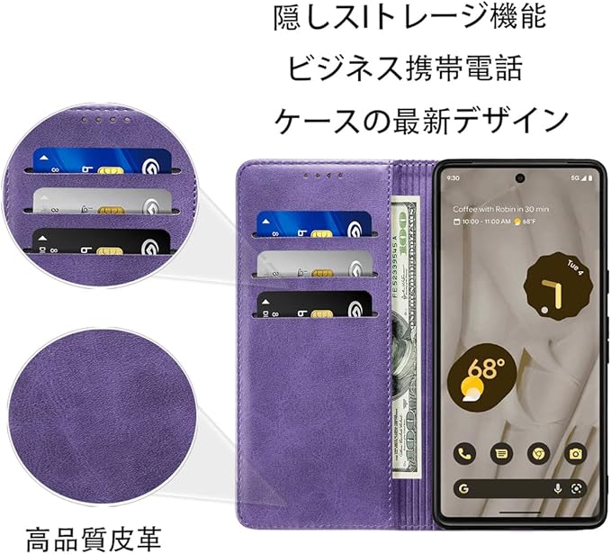 適用Pixel 10/10 Pro ケース 手帳型 高質PUレザーGoogle Pixel 10 Pro ケース グーグル ピクセル10プロ カバー ケース 手帳型 耐衝撃 内蔵マグネット開閉式 ベルトなし スマホケース おしゃれ カードポケット スタンド機能 便利 スプラット同梱 携帯ケース(パープル)