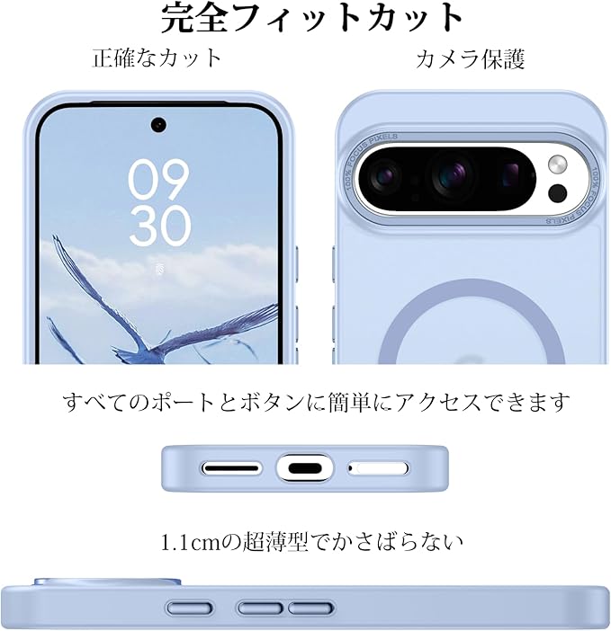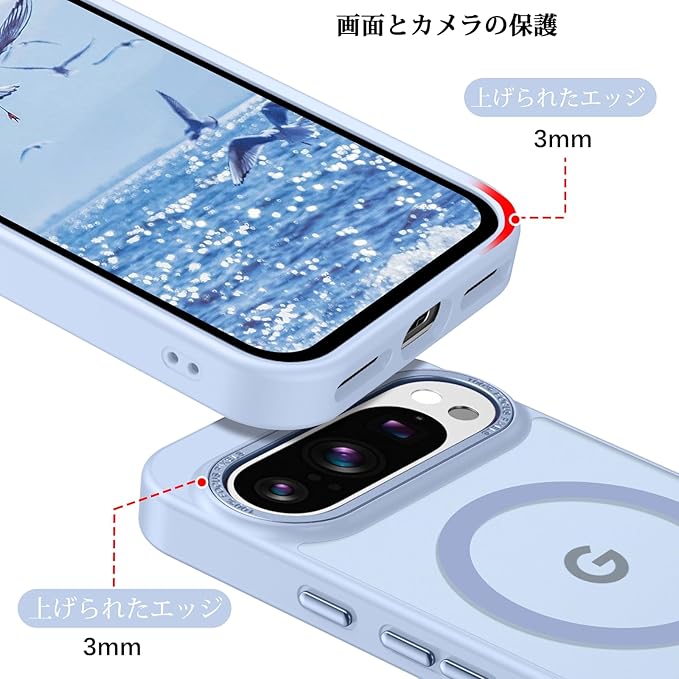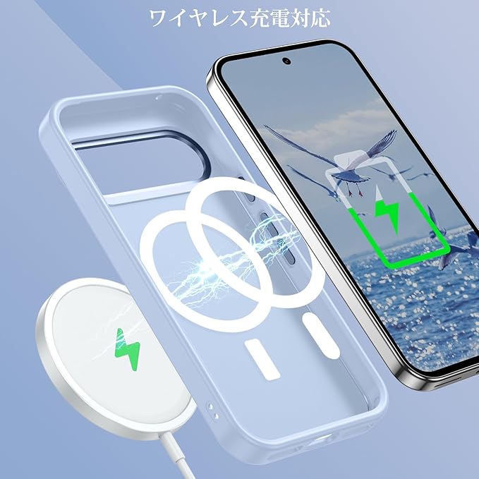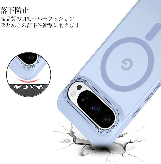 GaoBao Google Pixel 10 / 10 Pro ケース グーグルピクセル10 ケース Magsafe対応 PC+TPU 黄ばみにくい ストラップホール付き ワイヤレス対応 滑り止め カバー 半透明マット 画面レンズ保護 指紋防止 耐衝撃 ライトブルー