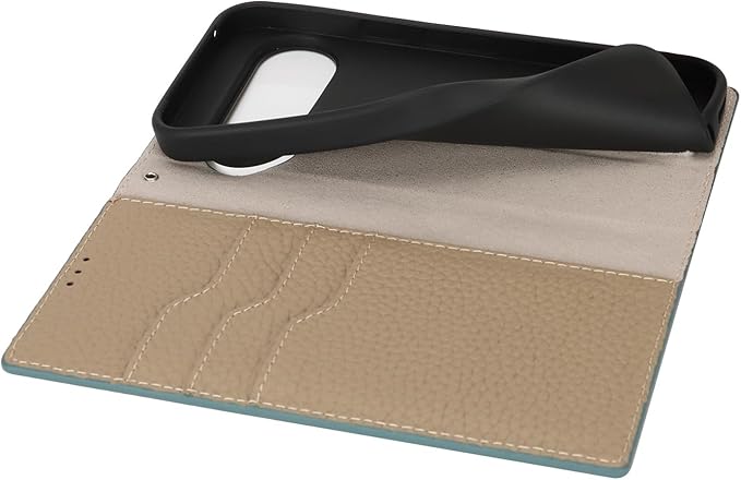 【素材】: シンプルさと高級感を兼ね備えたデザイン, 外殻は牛革製品 本革レザーを採用しており, 内側はスマートフォンにフィットし、隙間なくそれを保護するソフトTPUシリコーン材料で作られています。