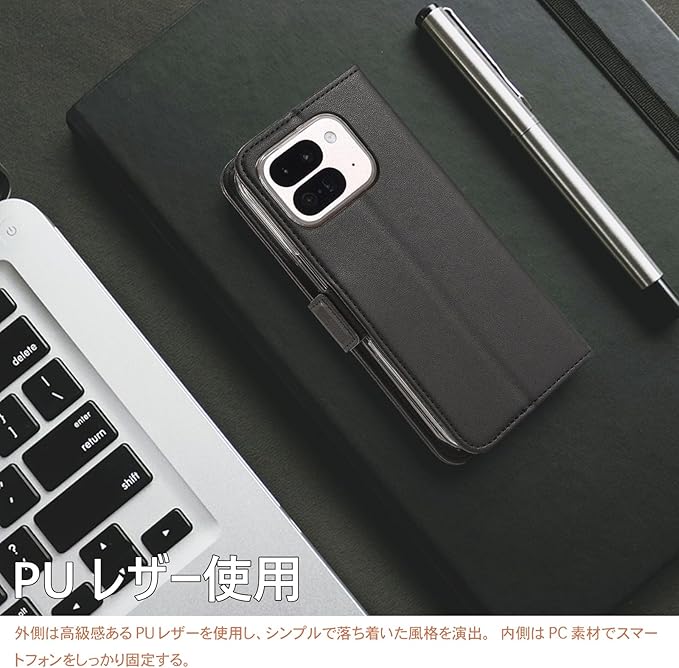 【PUレザー素材で風格と保護性能を両立】外側は高級感あるPUレザーを使用し、シンプルで落ち着いた風格を演出。内側は柔軟なPC素材でスマートフォンをしっかり固定するとともに、画面への接触によるキズを防止します。ビジネスからカジュアールまで、あらゆるシーンでご利用いただけます。(ご注意:PUレザー使用して、本革ではありません)
