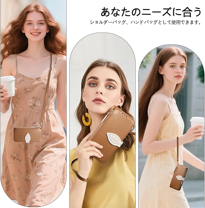 Vokpok対応 Google Pixel 10/10 Pro ケース 手帳型 ショルダー スタンド機能 強力マルチカード収納 グーグルピクセル 9/9 Pro 財布型ケース 肩掛け 斜めがけ 手首かけ、掛けストラップ付き おしゃれ 実用性 ジッパー小銭入れ Pixel 9/9 Pro スマホケース PUレザー ある滑らかな手触り ピクセル10/10 Pro ケース, ブラウン