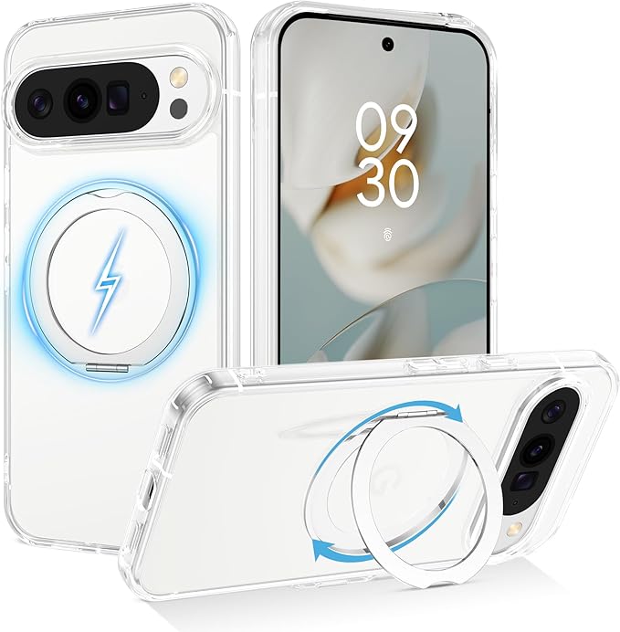 Telaso Google pixel 10 pro xl ケース MagSafe対応 マグネット搭載 スタンド機能 360 回転可能 pixel 10 pro xl ケース 透明耐衝撃 指紋防止 薄型 PC+TPU 車載ホルダー対応 ワイヤレス充電 全面保護 クリア