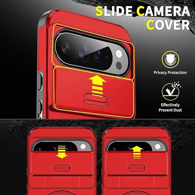 Pixel10 Pro XL 対応 ケース 【横縦両立・多機能360度回転スタンド】 リング 耐衝撃 薄型 TPU+PC 車載ホルダー レンズ保護 フィット感 防指紋 おしゃれ ストラップホール付き 落下防止 防塵 グーグル ピクセル10 プロ XL 対応 カバー 6.8インチ レッド JMJP15-3