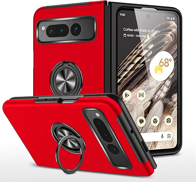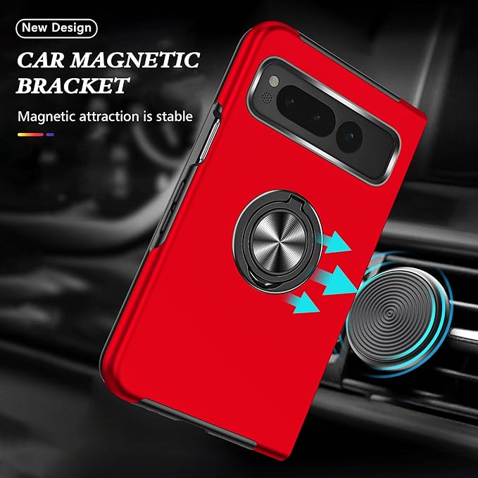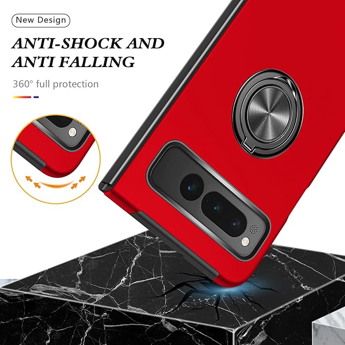 Google Pixel Fold 用 ケース リング付き TPU 耐衝撃 スマホケース 車載対応ホルダー対応 スタンド機能 軽量 薄型 グーグル ピクセル フォールド 用 ケース カメラ保護 衝撃吸収 指紋防止 黄変防止 一体型 四隅滑り止め 手触り良い 保護カバー 赤 SJ15.274