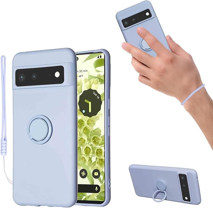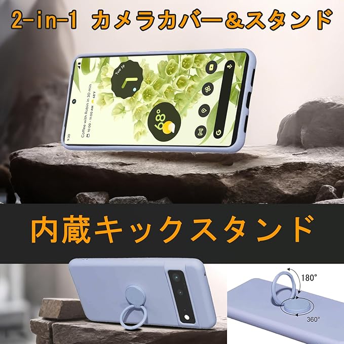 for Google Pixel 6a ケース 液状シリカゲル親肌TPU新型携帯スタンド保護カバーカップル 放熱強純色極シンプル(Pixel 6aうすむらさき)
