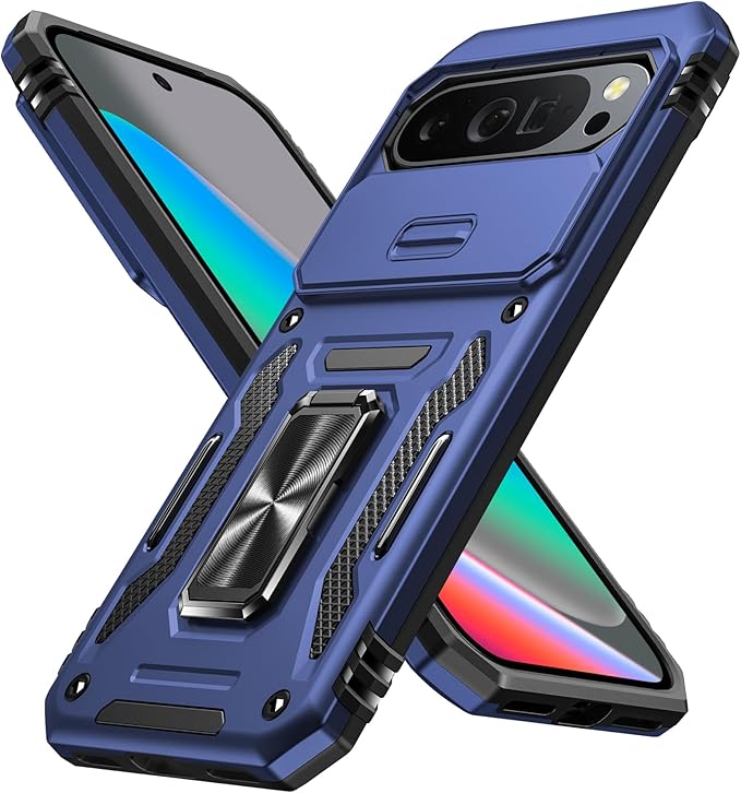 Google Pixel 10 Pro XL 用ケース リング付き 耐衝撃 レンズ保護 TPU+PC 二重構造 バンパー 車載ホルダー対応 360 回転 スタンド機能 スマホカバー グーグル ピクセル10 pro xl 用ケース 一体型 携帯カバー 青 J16-23